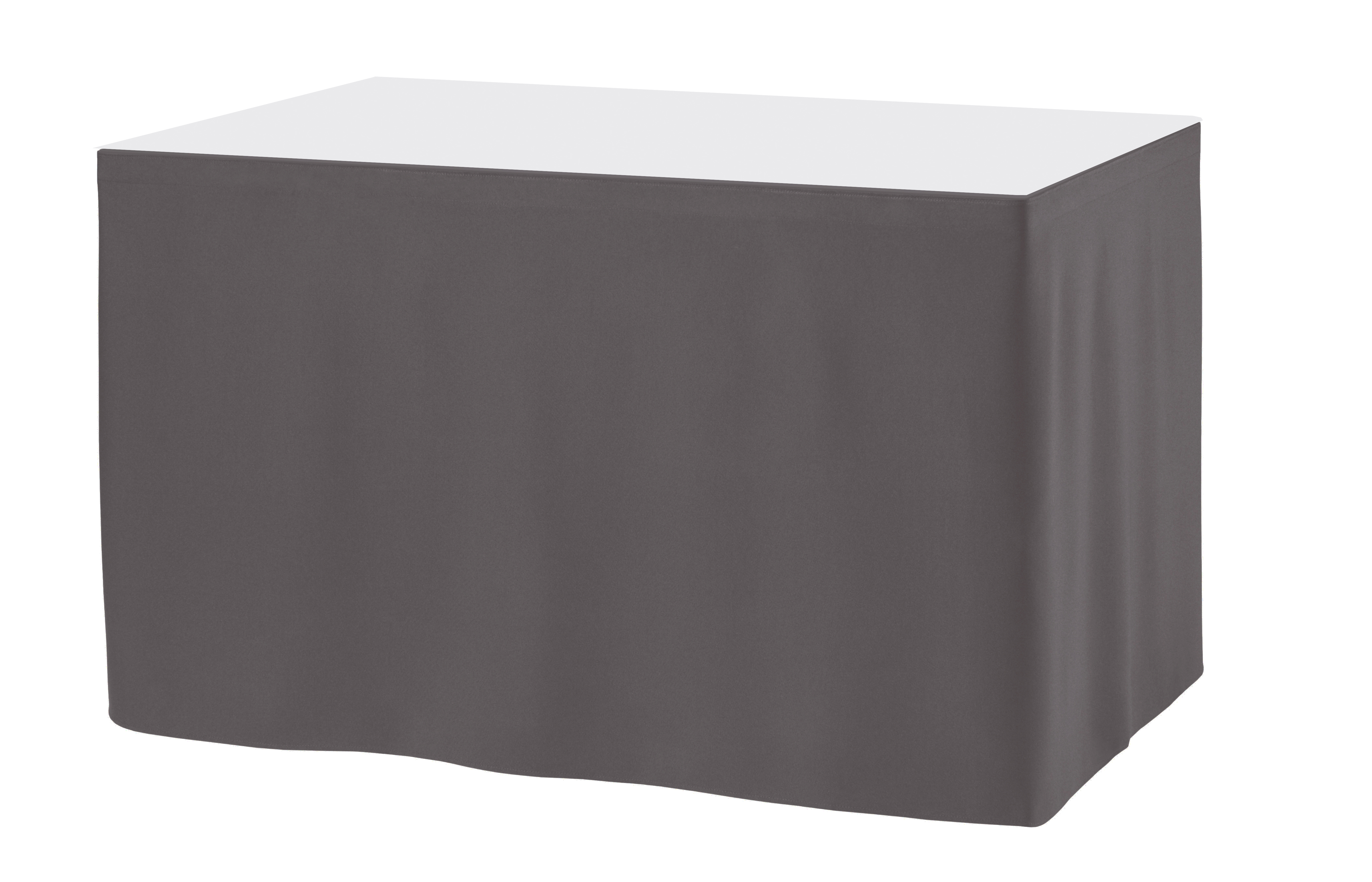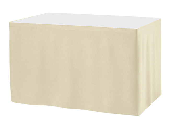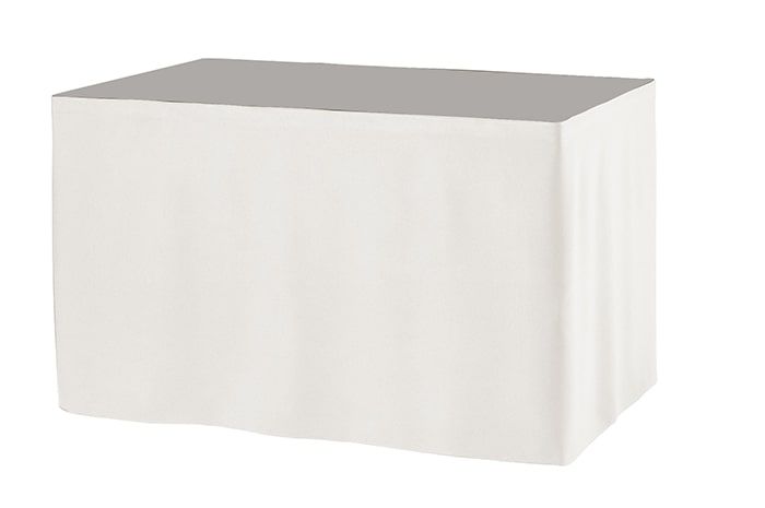 Tafelrok ongeplooid 73 cm hoog. Dit model tafelrok is verkrijgbaar in 3 verschillende afmetingen en past op een tafel met een minimale hoogte van 73 cm. De tafelrok is koppelbaar. Aan het eind van de rok zit aan de buitenkant klittenband waar de volgende rok tegenaan geplakt kant worden of waardoor de rok sluitend gemaakt wordt wanneer men 1 rok om 1 tafel gebruikt.